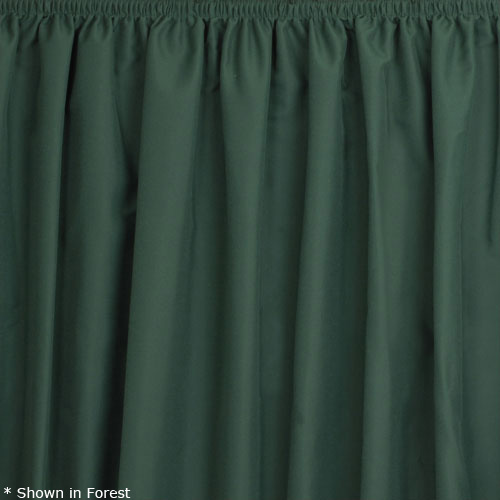 This is the subcategory page for Shirred Table Skirting. If you're looking to buy banquet table skirting in the shirred style, you're in the right place. The shirred style is characterized by an even gathering of fabric across the top of the skirt.