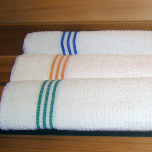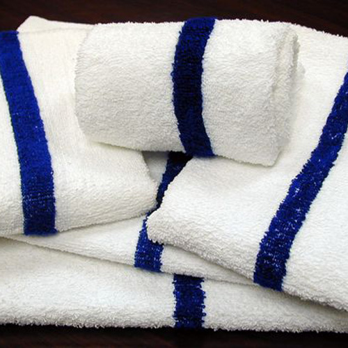 +Beach & Pool Towels 24x48 Terry 100% Cotton 8lb w/ Blue Center Stripe