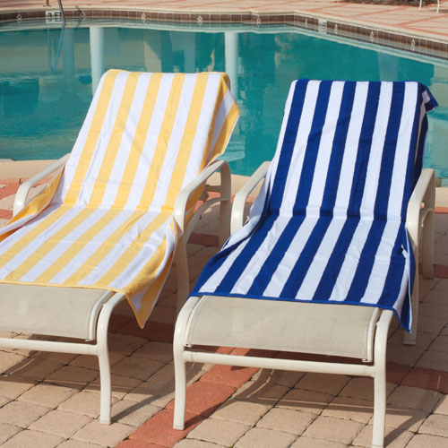 +Beach & Pool Towels 30x70 Terry 100% Cotton 15lb w/ 2" Cabana Stripes